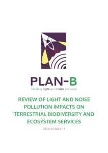This PLAN-B report collates and evaluates some of the available evidence for light and noise pollution impacts on terrestrial biodiversity and ecosystem services. The review demonstrates that: (i) both light an noise pollution impact terrestrial wildlife; (ii) synergistic effects can occur when organisms are exposed to both light and noise pollution in combination rather than individually; (iii) species differ in their response to these sensory pollutants based on the ways that they detect and use light and sound; (iv) although light and noise pollution impacts have been documented at levels within the range of normal background conditions, there is the potential that screening thresholds can be defined for population level impacts; (v) mechanisms of light and noise pollution impacts have been elucidated to varying degrees; (vi) laboratory studies can help to further define these mechanisms and help to explain patterns observed in field studies; (vii) there is evidence of both direct and indirect effects on ecosystem services. However, the review also highlights that studies on light and noise pollution across many taxa and geographic locations are limited. Mechanistic understanding of impacts is similarly limited, especially when extending from the individual to the ecosystem scale. Future work needs to prioritise addressing these limitations, using methods to quantify light and noise exposures in ecologically meaningful terms rather than relying on approaches and quantities that are specifically weighted towards human responses to these sensory pollutant