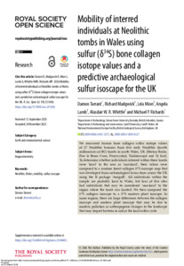 Mobility of interred individuals at Neolithic tombs in Wales using sulfur (δ34S) bone collagen isotope values and a predictive archaeological sulfur isoscape for the UK.