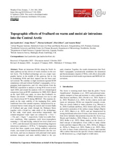 Topographic effects of Svalbard on warm and moist air intrusions into the Central Arctic.