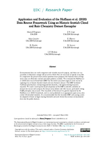 Application and evaluation of the Hoffman et al. (2020) data rescue framework using an historic Scottish cloud and rain chemistry dataset exemplar.