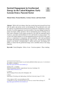 Rohse, Melanie; Hambley, Thomas; Abesser, Corinna; Ryder, Stacia. 2025 Societal engagement in geothermal energy in the United Kingdom: early lessons from a nascent sector. In: Manzella, A.; Allansdottir, A.; Pellizzone, A, (eds.) Geothermal Energy and Society. Springer Nature, 389-418. (Lecture Notes in Energy, 67).