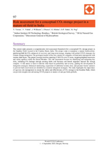 Verma, Y.; Vishal, V.; Williams, J.; Pearce, J.; Mishra, G.; Sinha, O.P.; Nag, K.. 2025 Risk assessment for a conceptual CO₂ storage project in a mature oil field in India. [Other] In: World CCUS Conference 2025, Bergen, Norway, 1-4 Sep 2025. European Association of Geoscientists & Engineers (EAGE), 1-5.