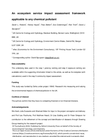 An ecosystem service impact assessment framework applicable to any chemical pollutant.