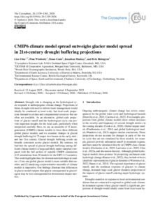 CMIP6 climate model spread outweighs glacier model spread in 21st-century drought buffering projections.