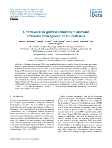 A framework for gridded estimates of ammonia emissions from agriculture in South Asia.