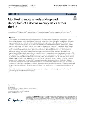Monitoring moss reveals widespread deposition of airborne microplastics across the UK.