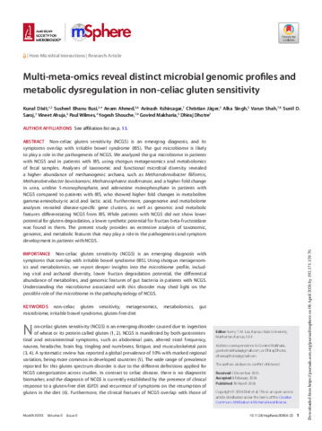 Multi-meta-omics reveal distinct microbial genomic profiles and metabolic dysregulation in non-celiac gluten sensitivity.