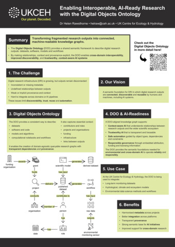 The Digital Objects Ontology (DOO) transforms fragmented research outputs (datasets, software, models, workflows) into a connected semantic foundation for digital research infrastructure. By standardising how digital objects and their relationships to people, funding and infrastructure are described, the DOO enables cross-domain discoverability and interoperability in integrated digital environments. This explicit semantic structure enables the development of context-aware, trustworthy and transparent AI systems. The DOO has been designed to be applicable to any research domain and is currently being implemented for environmental science outputs at the UK Centre for Ecology & Hydrology.