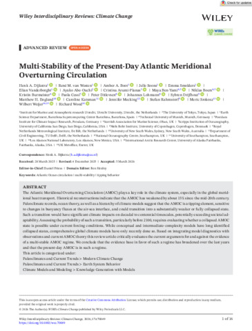 Multi‐stability of the present‐day Atlantic Meridional Overturning Circulation.