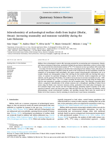 Sclerochemistry of archaeological mollusc shells from Inqitat (Dhofar, Oman): increasing seasonality and monsoon variability during the Late Holocene.