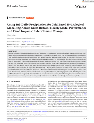 Using sub-daily precipitation for grid-based hydrological modelling across Great Britain: hourly model performance and flood impacts under climate change.