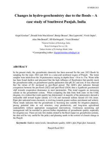 Changes in hydro-geochemistry due to the floods: a case study of Southwest Punjab, India.