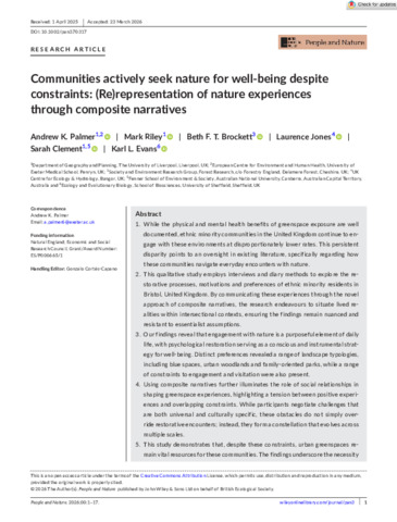 Communities actively seek nature for well-being despite constraints: (re)representation of nature experiences through composite narratives.