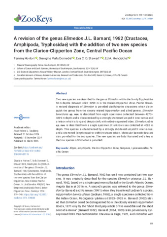 A revision of the genus Elimedon J.L. Barnard, 1962 (Crustacea, Amphipoda, Tryphosidae) with the addition of two new species from the Clarion-Clipperton Zone, Central Pacific Ocean.