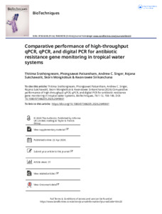 Comparative performance of high-throughput qPCR, qPCR, and digital PCR for antibiotic resistance gene monitoring in tropical water systems.